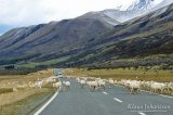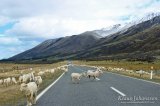 Vaikka emme nähneetkään maan korkeinta vuorta, näimme kuitenkin paluumatkalla jotain yhtä ihmeellistä, nimittäin uusiseelantilaisen liikenneruuhkan. Piti oikein silmiä hieraista, kun etäällä alkoi näkyä paljon vaaleaa liikehdintää. Suuri lammaslaumahan se oli matkalla laitumelta toiselle pitkin maantietä. Oli kyllä hauska näky, kun parinsadan lampaan katrasta ajettiin neljän paimenkoiran toimesta pitkin maantietä kohti vehreämpiä ruohikoita. Ruuhkasta selvittyämme jatkoimme matkaamme aina 4000 asukkaan Cromwellin kylään saakka, jossa majoituimme yöksi.