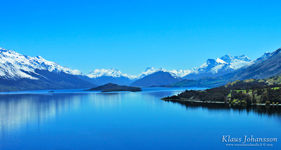 Nappasimme kuitenkin Queenstownista mukaamme vain pienet eväät ja jatkoimme kohti läheistä Glenorchyä. Glenorchy on pieni laakson pohjukassa sijaitseva tuppukylä noin 50 kilometriä Queenstownista. Itse kylässä ei ole mitään näkemistä, mutta sinne kulkeva tie on aivan uskomaton maisemiltaan! Pieni tie mutkittelee Lake Wakatipun rantapenkereellä niin että järvi on koko ajan toisella puolen ja sen takana lumihuippuiset vuoret kohoavat majesteettisina.
