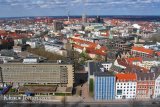 Kaupungintalon pääkupoliin on myös mahdollista kiivejä katsomaan maisemia noin 90 metrin korkeudesta. Ylös mennään viisi kerrallaan ihmeellistä ”vinohissiä” käyttäen. Hissi kulkee kupolin reunaa pitkin todella oudosti kääntyillen ja hissin lattiakin vaihtaa kaltevuuttaan matkalla. 😮 Ylhäältä on hienona päivänä upeat näkymät ja etelässä näkyvät muun muassa suuret messurakennukset. Samassa suunnassa sijaitsee myös sotavankien kaivama parin neliökilometrin kokoinen järvi kaupungin kupeessa. Pohjoisen suunnassa sijaitsee varsinainen keskusta sekä muun muassa päärautatieasema. Lännessä sijaitsee puolestaan Herrenhäuser Gärten, jonka suihkulähteen pystyy erottamaan täältä saakka!