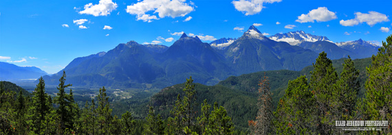 Vähemmän suomalainen maisema odottaa kuitenkin puolimatkassa sijaitsevalta näköalapisteeltä, jolta aukeaa kerrassaan hieno maisema länsipuolella kuhoavalle Tantaluksen vuorijonolle. Korkea vuorijono näkyy myös Whistlerin tielle ja sen pitkälle kesään saakka kestävät lumiset huiput pistävät aina silmään. Muodostelman korkein huippu on 2603 metriä korkea terävähuippuinen Mount Tantalus, jolta jono on saanut nimensä ja jonka rinteillä on lukuisia läpi kesän kestäviä jäätiköitä.