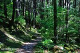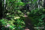 Loppumatkan maasto muodostuu alkumatkaa enemmän lehtipuista ja lehvästön varjossa olikin kiva kävellä kauniina kesäpäivänä. Polku on leveä ja hyvä kulkea, sillä sitä pitkin voi ratsastaa myös hevosella. Jälkien mukaan polulla ratsastetaankin sangen usein, tosin ainakin itseäni jännittäisi ratsastaa niin lähellä kallion reunaa.