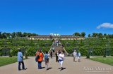 Palatsin ja sitä ympäröivän puiston nimi ”sans souci” on ranskaa ja tarkoittaa ”ilman murheita”, mikä kuvastaa hyvin kuninkaan hovin leppoisaa kesäistä palatsielämää. Koska Schloss Sanssouci on puiston päänähtävyys, on sen ympärillä aina vilkas turistikuhina. Ihmismassojen vuoksi emme viitsineetkään jonottaa palatsikierrokselle, joka olisi ollut tarjolla vasta muutama tuntia myöhemmin. Nautimmekin omaa huoletonta kesäpäiväämme palatsin edustan marmorisilla penkeillä aurinkoa ja valokuvia ottaen. 😛