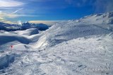 Hississä ylös saimme todistaa miten kymmenet laskijat kiljahtelivat innoissaan laskiessaan täysin koskemattomia rinteitä ja pehmeää lunta vain riitti ja riitti. Ensimmäisellä nousulla vielä täysin koskematon laaja laakso oli jo toisen nousun aikaan tupaten täynnä laskijoita, jotka olivat aivan into piukeina paksusta lumesta. Emme ole koskaan nähneet vastaavaa ja tunnelma oli erittäin iloinen. Moni laski ensimmäistä kertaa rinteiden ulkopuolella ja näimmekin monia syvässä lumessa kaatuneita, jotka etsivät kinoksiin hautautuneita suksiaan. 😆