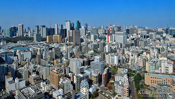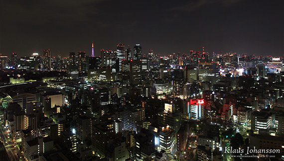 Maisema oli todellakin aivan uskomaton. Vasemmalla avautuivat näkymät Tokion edustalle rakennetuille tekosaarille korkeine asuinrakennuksineen. Rakennusten takaa pilkotti Tokion kuuluisa suuri Rainbow Bridge. Suoraan edessä kohoavat Minaton kaupunginosan suuryritysten pääkonttorien pilvenpiirtäjät lomassaan Tokion symboli, Tokyo Towerin televisiotorni. Oikealle katsottaessa keskusta jatkuu aina Shinjukun pilvenpiirtäjille saakka, yli 8 kilometrin päähän! Karkeasti arvioiden hotellihuoneemme maisema kattoi Tokion ydinkeskustan 80% mikä on melkoisen huikea pala kaupunkia!