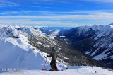 Huipulta lähtevät rinteet alkavat kutkuttavan kapeina ränneinä, ennen laskeutumistaan kulhoon ja sieltä alas metsän siimekseen. Kicking Horsen lumi tunnetaan shampanjapuuterina ja ensimmäisenä päivänä saimmekin nauttia ihanasta kuivan höttöisestä lumesta, jolla suksi luisti. Ensimmäisen päivän keli oli melko kylmä ja viimainen, mutta onneksi lämmitetyt sukat pitivät varpaat lämpiminä. 🙂