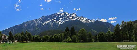 Aamupäivän vaellus toimi kuitenkin hyvin nälän herättäjänä ja söimme Pembertonin keskustassa upeissa kesämaisemissa 2591-metriä korkean ja jylhän Mount Currien juurella. Edellisillan sateesta ei ollut tietoakaan ja elohopea kohosi sekä lauantaina että sunnuntaina hellelukemiin saakka.