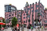 Vaikka tämä kanavasilta kuulostikin kiintoisalta, emme kiertäneet katosmaan sitä. Sen sijaan tutustuimme Magdeburgin keskustaan, jossa kohoaa muun muassa kaupungin hieno tuomiokirkko vuodelta 1209. Keskustan ehdottomasti värikkäin rakennus on sangen erikoinen itävaltalaisen taiteilija Friedensreich Hundertwasserin suunnittelema Grüne Zitadelle, joka on osa eri puolilla Saksaa ja Itävaltaa sijaitsevaa erikoisten rakennusten sarjaa. Hundertwasser vihasi suoria linjoja sekä standardin mukaan rakennettuja rakennuksia ja hänen mielestään jokaisen rakennuksen kuului olla uniikki. Sitä Magdeburgin keskustassa sijaitseva vaaleanpunainen kortteli kyllä onkin ja ainakin se tuo vaihtelevuutta kaupunkikuvaan.