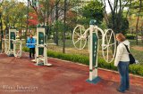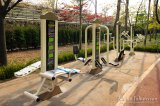 Maisemat katsottuamme lähdimme palaamaan kohti metroasemaa. Matkalla oikaisimme uuden asuinalueen pienen puiston poikki. Yllätykseksemme puisto oli täynnä ulkosalle pystytettyjä kuntosalilaitteita. Korealaiset näyttävät ottavan kansanterveyden tosissaan, sillä tällaisia ilmaiseksi laitteita on useissa puistoissa. Berliinissä tällaiset laitteet eivät kestäisi vandalismia pitkään, mutta tämän puiston laitteet olivat uusia ja priimakunnossa. Niitä oli myös käyttämässä muutama kaiketi lähiseudulla asuva kuntoilija eli turhia ne eivät ole.