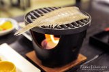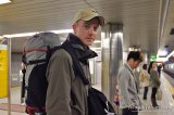 Ylhäällä sijaitsevalta ravintola-alueelta löysimme viimein erikoisen japanilaisen ravintolan. Jokaisessa ravintolan pöydässä on iso lämmityslevy, jolle tilattu ruoka tuodaan ja jolla ruoka säilyy lämpimänä koko ruokailun ajan. Ruokalista oli melko erikoinen ja niin tulikin tilattua merenelävillä (esimerkiksi mustekalalla) päällystetty munakas, joka oli… kiintoisan makuista. Ruoka oli ihan hyvää ja jälleen voimia kerättyämme lähdimme hiljalleen kohti majapaikkaamme. Ennen ravintolakerroksesta laskeutumista piti aseman korkea päähalli kuitenkin ylittää katonrajassa kulkevaa huikeaa kävelysiltaa pitkin. Sieltä katsoen ihmisvilinä alhaalla tuntui niin pieneltä.