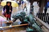 Lämpimän sateen edelleen piiskatessa meitä, jatkoimme matkaa yhdelle Kioton monista UNESCO:n maailmanperintökohteista: Kiyomizu-deran temppelille. Kyseinen temppeli juontaa juurensa peräti vuoteen 798 saakka, tosin alueen nykyiset rakennukset on rakennettu vuonna 1633. Yksityiskohtana mainittakoon, että yhdessäkään alueen yli 30 rakennuksessa ei ole käytetty naulan naulaa, vaan rakennukset on rakennettu muun muassa pinoamalla. 😮