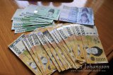 Seuraavaksi ohjelmassa oli valuutan vaihto, sillä halusimme vaihtaa tarpeettomat Japanin jenit Korean woneihin. Olimme jo Japanissa tottuneet siihen, että satojen eurojen ostokset ovat jeneissä kymmeniä tuhansia. Oli silti pienoinen yllätys, että saimme tuhatta euroa vastaan melkein 1,6 miljoonaa(!) wonia. Siinä sitä oltiin kerrasta miljonäärejä! Hauskasti valuuttatoimiston nainen vielä meinasi ensiksi antaa rahat vihreinä 10 000 wonin (noin 6 euron) seteleinä, jolloin seteleistä kertyi melkoisen paksu tukku kahisevaa. Onneksi heillä oli myös kaikkein suurimpia seteleitä ja niinpä sain vain pienehkön tukun keltaisia 50 000 wonin (noin 32 euron) seteleitä. Suurempaa seteliä maassa ei todellakaan ole olemassa, joten tuhansien eurojen ostoksia ei parane tehdä Etelä-Koreassa käteisellä!!