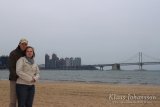 Metron kyydissä palasimme pienen matkaa kohti keskustaa. Poikkesimme jälleen eräässä Lotten tavaratalossa syömässä Lotteria nimisessä pikaruokalassa. Sieltä jatkoimme matkaa Länsi-Busaniin, Haeundae-gun kaupunginosaan. Kaupunginosa on tunnettu upeista hiekkarannoistaan, jotka ovat kesäisin erittäin suosittuja. Rannoista Seogwipoa sanotaan Etelä-Korean parhaaksi ja Haeundae on kesäisin aivan täynnä väkeä. Näin huhtikuun lopussa alueella oli hyvin rauhallista, sillä tuulinen keli ei kyllä houkutellut lähellekään vettä.