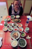 Niin tai näin, korealaisilla tuntuu pyyhkivän taloudellisesti hyvin ja vilinää paisuvissa kaupungeissa riittää. Me saimmekin tarpeeksemme ensimmäisen päivän vilinästä ja palasimme hotellillemme. Hotellilla nautimme hotellin korealaisessa ravintolassa korealaisen päivällisen. Siinä eteemme tuotiin reilun toistakymmentä kippoa ties mitä lämmintä ja kylmää. Joukossa oli niin eksoottisia kasviksia, kuin mereneläviäkin. Suurin osa osa syödystä jäi jälleen kerran tuntemattomaksi syöjille, mutta sen verran löysimme kuitenkin syötäväksi kelpaavaa, että tulimme ateriasta täyteen.