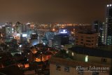 Busanin hotellitarjonta oli ainakin netin mukaan sangen suppeeta, joten valitsimme huoneen sikäläisittäin sangen tunnetusta Hotel Commodoresta. Kyseessä on sangen kiintoisan näköinen viiden tähden hotelli näyttävällä paikalla. Kuten odottaa saattaa, oli palvelu hyvää heti saapumisesta saakka ja saimmekin mukavasti huoneen yläkerroksista. Huoneestamme aukenikin hieno maisema yli eteläisen Busanin sekä kaupungin edustan poukaman.