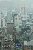 Emme kuitenkaan jääneet ihmettelemään maisemia, vaan suuntasimme kävellen kohti läheistä Busan Toweria. Tämä hieman Näsinneulan näköinen 120-metrinen näköalatorni oli mielestämme hyvä paikka aloittaa Busaniin tutustuminen. Torni on hieman aikansa elänyt ylhäältä, mutta sieltä aukesivat silti upeat näkymät yli koko Etelä-Busanin. Koko Busania sieltä ei silti ole mahdollista nähdä, ei läheskään, sillä kaupunki todellakin jatkuu vielä pitkälle ympäröivien vuorien taakse. Myös Busanissa selkeästi havaittavissa oleva savusumu haittaa normaalisti näkyvyyttä sen verran, että näkyvyys on osin rajoittunut.