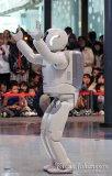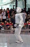 Miraikanin vetonaula on kuitenkin ASIMO. Kyseessä on japanilaisen autovalmistaja Hondan vuosien 2000 ja 2005 välillä kehittämä noin 130 senttinen robottiukkeli. Vaikka kyseessä on jo vuosia vanha malli, oli ehdan robotin näkeminen meistä huikeaa. ASIMO tunnistaa oman nimensä ja ymmärtää eleitä kuten vilkutuksen tai johonkin suuntaan osoittamisen. Se myös tunnistaa kymmenen eri ihmisen kasvot ja pystyy kommunikoimaan paitsi eleillä, myös jossain määrin puhumalla ympäröivien ihmisten kanssa. Jos jo pelkästään tämä on hämmästyttävää, on sitä erityisesti ASIMOn kyky kävellä sangen luontevasti ja jopa juosta. Palloakin ASIMO osaa potkaista, tosin pienen tuumaustauon jälkeen.