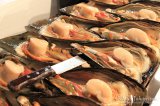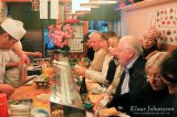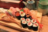 Meren hedelmät nähtyään onkin hyvä katsastaa alueen kyljessä sijaitsevat sushi-ravintolat, joissa tarjoillaan maailman tuoreinta sushia ja sashimia. Ravintoloita on kymmenkunta ja ne ovat todella suosittuja paikkoja nauttia vielä pari tuntia aiemmin meressä uiskennellut aamupala. Voisi luulla että puoli seitsemältä maanantaiaamuna ei tarvitsisi jonottaa aamupalalle, mutta jonotusaika parhaisiin ravintoloihin oli silti noin tunnin luokkaa. Aamu oli säältään kolea ja kaatosateinen, joten pienen katoksen alla ulkosalla jonottaminen oli kolea kokemus.