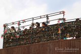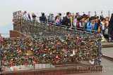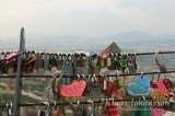 Maisemat tornilta ovat siis näkemisen arvoiset. Korealaiset lienevät lemmenosoitusten perään, sillä hauskana juttuna tornin sisäseinästä on mahdollista ostaa itselleen yksittäinen seinälaatta, johon voi rustata lemmenviestinsä. Viestejä olikin nähtävillä huikean paljon ja vuosien takaa. Samanlainen teema jatkui tornin juurella, jossa oli myynnissä lukkoja pienellä lappusella. Lappuseen oli myös mahdollista luritella viestinsä ja sitten kiinnittää se metalliseen aitaan ”ikuisiksi ajoiksi”. Abloylla mahdetaan hieroa tyytyväisenä käsiä, sillä pitkään aitaan oli jo kiinnitetty varmaankin kymmeniätuhansia(!) lukkoja ja jatkuvasti joku oli kiinnistämässä uutta. Ajatus on ihan hauska ja lienee mielenkiintoista käydä katsomassa omaa lukkoaan (jos sen enää röykkiön alta löytää) vuosikymmenien jälkeen.