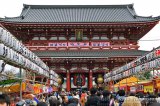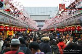 Ihmismassojen peesissä on helppo löytää perille Senso-jille, joka on rakennettu alkujaan vuonna 628. Temppeli on kuitenkin rakennettu uudelleen toisen maailmansodan jälkeen ja se on nykyään Tokion merkittävimpiä buddha-temppeleitä. Temppelille saavutaan kahden suuren puisen portin lävitse pitkin Nakamise-dori nimistä katua, jonka varressa sijaitsee varmasti yli sata pienen pientä liikettä. Ne myyvät kaikkea mahdollista aina pienestä naposteltavasta mitä erikoisempaan rihkamaan, mutta myös suitsukkeita pyhiinvaeltajille. Tungoksen vuoksi temppelin komeista porteista oli hieman hankala nauttia, joten jatkoimme sisemmäs temppelialueelle jossa tungos hieman helpotti.