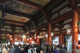 Suurella temppelialueella sijaitsee kauniita torneja ja rakennuksia, mutta valitettavasti itse kookas päärakennus oli remontissa ja siksi pressujen sisässä. Sisältä rakennus ei näyttänyt kovinkaan ihmeelliseltä, temppelin sisustuksen ollessa melko pelkistetty. Vasta monen muun temppelivierailun jälkeen meille valkenisi että tyypillinen buddhalainen temppeli on yleensä sangen pelkistetty puurakennus, jossa on pieniä alttaritiloja. Senso-jin pääalttarin edessä riitti vilinää, ihmisten kumarrellessa ja heittäessä kolikoita suureen nieluun. Tällaisia valtavia keräyslaatikoita on suunnilleen jokaisessa temppelissä ja jenin (¥) kolikot (1 jeni = alle 1 eurosentti) sinkoilivat jatkuvalla syötöllä näihin keräysuurniin. Tästä johtuen Senso-jin äänimaailma ei muodostunut hartaasta muminasta, vaan lähinnä kolikoiden kiivaasta kilinästä.