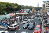 Emme olleet kuitenkaan ainoat matkalla temppelille ja metron saavuttua päätepysäkille, sieltä purkautui valtava mustahiuksisten japanilaisten lauma. Kaikilla näytti olevan myös sama kohde, joten temppelille ei ollut vaikea löytää. Metroaseman ulkopuolen rakennuskanta paljastui ydinkeskustaa matalammaksi ja aseman edustalla ihmiset jonottivat perinteisen ihmisen vetämän riksan kyytiin. Meillä oli kuitenkin jaloissa voimaa ja jatkoimme kävellen kohti temppeliä.