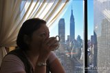 Heräsimme aikaisin, sillä oli aika aloittaa varsinainen kaupungin tutkiminen. Aamiainen tarjoiltiin vain kerrosta alempana, 38. kerroksen eteläkulmauksen pienessä aamiaisravintolassa, josta oli upea maisema itään ja etelään. Hotellin ohi kulkevaa 32th Streetiä vain neljä korttelia edempänä kohoaa kaupungin tunnetuin rakennus, peräti 102-kerroksinen Empire State Building. Etelän suunnassa katse ylsi yli koko eteläisen Manhattanin ja aina Downtownin pilvenpiirtäjille saakka. Erotettavissa olivat jo noin 300 metrin korkeuteen kohonnut World Trade Center One, josta tulee valmistuessaan 541 metrin korkuisena Downtownin selkeästi erottuvin rakennus. Hudson Riverin länsirannalla puolestaan Jersey Cityn pilvenpiirtäjät loistivat aamuauringossa ja näiden kahden välissä, kaukana omalla pienellä saarellaan, pilkotti ikoninen Vapaudenpatsas. Melkoinen maisema aloittamaan päivä!