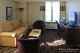 Hetken ynnäiltyään vastaanottovirkailija kertoi, että tarjolla olisi vieläkin parempi 39. kerroksen kulmahuone, josta olisi maisema sekä Midtownin että Hudson Riverin ja New Jerseyn suuntaan. Valitsimme huoneen, joka paljastuikin upeaksi sviitiksi, johon kuului erillinen olohuone, keittiö, kylpyhuone sekä kaksi isoa vaatekomeroa. Maisema rakennuksen huipulta oli aivan uskomaton, yltäen kymmenien kortteleiden päähän. Korkeiden rakennusten ystävänä mieluista oli nähdä omasta ikkunasta kolme kaupungin korkeimpiin kuuluvaa pilvenpiirtäjää; Bank of America Tower (366 metriä), legendaarinen Chrysler Building (320 metriä) sekä New York Times Building (319 metriä).