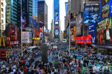 1990-luvulla kaupunkia hallinneet pormestarit ryhtyivät lopultakin töihin alueen siistimiseksi. Kuuman kiinteistöbuumin aikana alueelle kohosi runsaasti uutta liiketilaa ja hiljalleen siitä muodostui nykyisin Theater Districtinä tunnettu New Yorkin suosituin viihdealue. Broadwayn kuuluisat teatterit sijaitsevat juuri täällä ja niiden sekä kymmenien tuotteiden mainostaulut loistavat värikkäinä Times Squaren reunustoilla. Rakennusten seiniä peittävät valtavat näyttötaulut, joilla pyörii mainoksia vuorokauden ympäri. Aukion visuaalisesta tykityksestä ei saa käsitystä ilman videota ja kaupallisuuden aste oikein iskee vasten kasvoja. Mielestämme jopa Tokion Shibuyan kaupunginosa jää Times Squarelle toiseksi ja ainoa missä Shibuya menee edelle on metelin määrä, joskin ei Times Squarellakaan hiljaista ole.