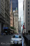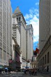 Laiturialueelta jatkoimme syvemmälle Downtownin uumeniin, jossa toimistopilvenpiirtäjät kohoavat kapeiden katujen viertä muodostaen urbaaneja kanjoneita. Alueella on päivisinkin varjoisaa ja alueen tunnetuin katu on rahamaailman keskus Wall Street. Sen varrella sijaitseva historiallinen pörssirakennus on nykyisin verhottu mauttomasti jättimäiseen tähtilippuun, mutta kokonaisuus kätkee sisäänsä koko maailmaa ryöstävän ahneen globaalin rahamaailman hermokeskuksen. Pörssipellejen rakennuksesta otettujen muutaman valokuvan jälkeen jatkoimme edemmäs kohti Downtownin eteläkärkeä.