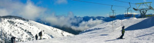 Iltapäivällä laskimme sekä Schlossalmin että Hohe Scharten rinteitä, jotka olivat loistavat. Rinteet olivat pääasiassa miellyttävän loivia, sisältäen vain muutamia jyrkempiä kohtia. Ja mikä parasta, rinteillä oli runsaasti leveyttä kaarrella. Alpeilla rinteet ja nousut ovat niin pitkiä, että reiluun kahteen tuntiin ehdimme laskea yhteensä neljä rinnettä. Koska hiihtokeskukset menevät kiinni jo puoli viideltä illalla, aloimme tuon jälkeen jo suunnata takaisin kohti Stubnerkogelia. Vuoren huipulla katsastimme sinne kahden hissiaseman välille rakennetun 140-metrisen riippusillan, joka 2300 metrin korkeudellaan on Euroopan korkeimmalla sijaitseva riippusilta.