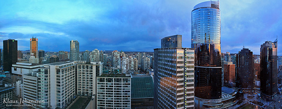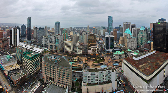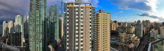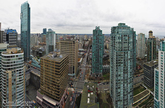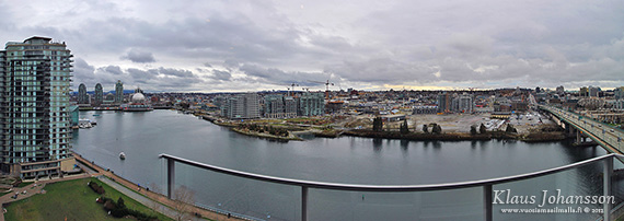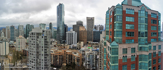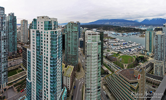 Onneksemme emme olleet asunnonmetsästyksessämme yksin, sillä työpaikkamme oli järjestänyt avuksemme paikallisen kiinteistönvälittäjän. Tämä vanha brittinainen osoittautui erittäin mukavaksi henkilöksi ja kierrätti meitä monena iltana katsomassa toiveisiimme soveltuvia asuntoja. Alla on kuvakavalkaadi asunnoista joita kävimme katsomassa. Vaikka mikään näistä asunnoista ei natsannutkaan meidän makuumme, aukesi monesta hulppeita maisemia ympäröivään kaupunkiin. Kuvista saa ehkä pientä käsitystä millaisia keskusta-asuntoja Vancouverista saa 2500-3500 dollarilla. Valokuvaus ei ollut näillä reissuilla pääosassa, joten monet kuvat on otettu kiireellä paikoin sateisen kelin vallitessa taikka likaisten ikkunoiden läpi.