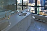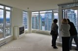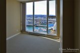 Kävimme katsomassa myös muutamaa asuntoa väliaikaisen asuntomme lähettyvillä Coal Harbourissa. Ensimmäinen oli hieman vanhempi 90-luvulla rakennettu Emerald West (717 Jervis). Asunto oli peräti 130 neliön kokoinen ja sisälsi kolme makuuhuonetta sangen järkevällä pohjaratkaisulla. Lisäksi se oli siististi remontoitu ja olohuone oli tilava. Olimmekin melko innostuneita siitä, mutta ainoa ongelma (lähinnä varmaan minulle) oli sijainti 19. kerroksesta. Ympäröivä alue on erittäin tiiviisti rakennettua, joten asunnon maisemat olivat melkein tyystin vieressä kohoavia tornitaloja. Urbaania, mutta ei kuitenkaan mitä itse halusin.