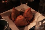 Tätä taustaa vasten olikin kiintoisaa suunnata ravintolalle viime torstaina viiden hengen työporukkamme sekä Niinan kanssa. Saavuimme paikalle ajoissa, mutta oven edessä oli jo muutaman hengen jono. Onnistuimme kuitenkin saamaan seurueellemme pöydän ilman odotusaikaa, mikä oli loistava juttu. Sisältä ravintola on perussiisti intialainen ravintola, jossa on intialainen sisustus ja soi sikäläinen musiikki. Ruoka on fuusio-intialaista, eli se yhdistelee makuja ja ideoita eri puolilta Intiaa yhteen erilaisiksi luomuksiksi. Intialainen työkaverini on nimittäin sivistänyt minua, että yli 90% länsimaissa ”intialaisena” myytävästä ruoasta on oikeasti puhtaasti pohjoisintialaista, missä on kuulemma suuri ero esimerkiksi mausteita voimakkaasti yhdistelevään eteläintialaiseen keittiöön verrattuna.