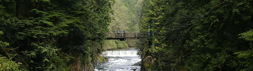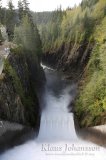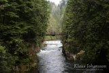 Tänään sunnuntaina keli oli puolipilvinen, joten päätimme ajaa heti aamusta Grouse Mountainin laskettelukeskuksen parkkialueen lähettyvillä sijaitsevalle Capilano Canyonille. Tämä veden uurtama syvä kanjoni erottaa West Vancouverin ja North Vancouverin kaupungit toisistaan ja on koskimelojien suosiossa. Kanjonissa villinä virtaava Capilano River saa vetensä 160 metriä merenpinnasta sijaitsevalta suurelta Capilano Laken tekojärveltä. Järvi on rauhoitettu kokonaan ihmisiltä, sillä se on yksi Vancouverin metropolialueen kolmesta suuresta vesivarastosta (toiset kaksi ovat Seymour Lake ja Coquitlam Lake hieman idempänä). Capilano Lake saa vetensä ympäröiviltä vuorilta ja se tarjoaa huippulaatuisen juomaveden 40%:lle koko metropolialueen noin 2,4 miljoonasta asukkaasta.
