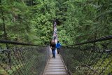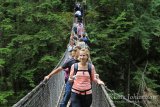 Reitin huipentuma on sangen lopussa sijaitseva riippusilta. Vuonna 1912 valmistuneella riippusillalla on mittaa 48 metriä ja se ylittää noin 50 metriä alempana kohisevan Lynn Creekin kanjonin. Riippusilta on Vancouverin alueen toiseksi kookkain (hieman pidempi on maksullinen Capilano Suspension Bridge) ja ilmaisena se houkuttelee luokseen runsaasti turisteja suorittamaan lyhyen kanjonin ylityksen. Vanhempieni kanssa paikan päällä käydessämme siellä ei ollut alkuunkaan ruuhkaista, mutta näin lauantaina silta oli tupaten täynnä ihmisiä. Ruuhka oli hieman harmillista, mutta ei ollenkaan ihme, sillä riippusilta on hauska vierailukohde ja siihen voi yhdistää myös pienen noin kilometrin mittaisen sangen helppokulkuisen lenkin kanjonin rantaa pitkin.