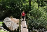 Riippusillalta polku jatkuu takaisin kohti parkkipaikkaa. Matkalla sijaitsee hieman erikoinen uimaranta, jossa pienen hiekkasärkän kohdalla ihmiset saapuvat pulikoimaan kanjonin kirkkaassa vedessä. Vesi on todennäköisesti sangen kylmää, mutta paikka on kaunis, jos vain sietää kesäviikonlopun ihmismassat. 🙄