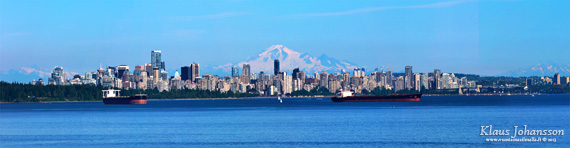 Tiistai-iltana kävimme vieraidemme kanssa jo perinteeksi muodostuneessa Lighthouse Parkissa katsomassa siellä jököttäviä jättimäisiä puita sekä ihailemassa sieltä aukeavaa hulppeeta näkymää kaupungin suuntaan. Zoom-linssi hieman vääristää panoraaman etäisyyksiä, minkä vuoksi noin 120 kilometrin etäisyydellä sijaitseva Mount Baker ikuistui kuvaan jättimäisenä. Jättimäinen vuori kyllä onkin, mutta myönnettäköön ettei kuva vastaa aivan täysin todellisuutta. 😉