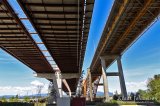 Keli oli kerrassaan mahtava ja päätimmekin ajella takaisin Vancouveriin hieman eri reittiä. Minua on jo pitkään kiinnostanut käydä kokeilemassa upouusi South Fraser Perimeter Road niminen maantie, joka ei johda vielä minnekään, mutta tulee kokonaan valmistuessaan yhdistämään Surreyn ja Trans-Canada Highwayn Deltaan ja Tsawwassenin lauttaterminaaleihin. Tie oli mukava ajella, sillä liikennettä ei ollut nimeksikään. Tieltä tarjoutui kuitenkin mahdollisuus nähdä sekä uusi että vielä pystyssä oleva vanha Port Mann Bridge uudesta vinkkelistä suoraan niiden alapuolelta.