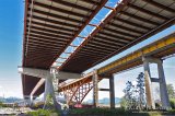 Matkalla meille tarjoutui tilaisuus todeta Vancouverin kaikkien aikojen suurimman tierakennushankkeen tämän hetkinen tila. Olen jo aiemmin kertonut Gateway Program nimisestä jättihankkeesta, jossa Vancouver metropolialueen tärkein moottoritie levennetään kymmenien kilometrien matkalta 8-kaistaiseksi. Matkalle valmistuu myös peräti maailman leveimmäksi yltävä moottoritiesilta, kun uusi 10-kaistaisen Port Mann Bridge otetaan käyttöön koko kapasiteetissaan vielä tänä vuonna. Olemme kerenneet jo ajaa sillan ylitse muutamaankin otteeseen, mutta nappasin kokemuksesta muutamia tuoreita kuvia alle.
