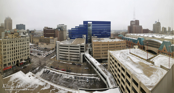 Hyvin nukutun yön jälkeen sunnuntaiaamu valkeni… valkeana. Verhot avattuamme saimme nimittäin todeta, että ulkona menossa todella sankka lumipyry. Aamupalaa löytääksemme meidän piti vieläpä lähteä ulos pyryyn, joka oli tehnyt Milwaukeen kaduista vielä edellispäivääkin hiljaisemmat ja vaikeakulkuisemmat. Lunta tuli nimittäin siihen tahtiin, että paikallisella aurauskalustolla oli kova työ pysyä mukana. Onneksi oli kuitenkin sunnuntai, eikä kenelläkään ollut kiire minnekään.
