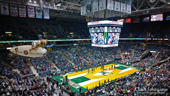 Kävelykierroksemme jälkeen vetäydyimme hotellille nukkumaan virkistävät päiväunet, sillä olimme melko nuutuneita bussissa nukutun yön jäljiltä. Illalla lähdimme nokosista virkistyneitä katsomaan NBA-koripalloa hotellin vieressä sijaitsevalle areenalle. Kaupungin kotijoukkue on nimeltään Milwaukee Bucks ja vastustajakseen nämä olivat saaneet Philadelphia 76ersit. Vaikka kyse oli vasta toisesta NBA-ottelustani ikinä, oli tämä kuitenkin jo toinen kerta kun näin 76ersien pelaavan, sillä kävimme katsomassa joukkueen peliä myös alkuvuoden Philadelphian matkallamme.