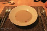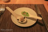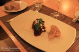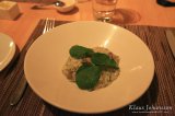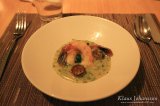 Vaikka olenkin liharuoan suuri ystävä, kiehtoi meitä kokeilla laadukkaasti valmistettu vegaanimenu, joka onnistuikin yllättämään meidät monessa kohtaa. Kokin tervehdyksen jälkeen meille esimerkiksi tarjoiltiin maukas omena- ja sellerikeittoa, jota seurasi erittäin tuore salaatti. Tämän perään tarjoiltiin muutama pieni napostelulautanen sekä mascarpone-juustolla täydennetty risotto herkullisilla oliiveilla.