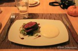 Pääruokana menuun kuului ensimmäiseksi kuningasoistereita italialaisen polentan kanssa. Seuraavassa annoksessa saimme nauttia hyvällä kastikkeella kuorrutetusta täpläravusta, jota seurasi vielä vegaanimenun ulkopuolelta joukkoon lisätty puoliraa’aksi paistettu häränfilee.