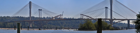 Eilen sunnuntaina kaunis keli sai minut ajamaan iltapäivästä metropolialueen itäosaan katsomaan miten uuden Port Mann Bridgen valmistuminen on edennyt viime kuukausina. Itse uusi siltahan on ollut avoinna ja käytössä jo toista vuotta, mutta vieressä seisseen vanhan 5-kaistaisen terässillan purkaminen on ollut poikkeuksellisen hidasta.