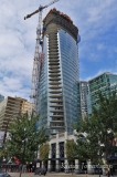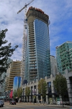 Vancouverin tämän hetken korkein rakennusprojekti ansaitsee luonnollisesti erityishuomiota ja niinpä kerrottakoon että kaupungin keskustaan nouseva amerikkalaisen liikemies Donald Trumpin nimeä kantava Trump International Hotel & Tower Vancouver -pilvenpiirtäjä on kesän aikana kerennyt kohota jo 39 kerroksen korkeuteen. Laitoin projektista edellisen kerran kuvia helmikuussa, jolloin työmaa oli ehtinyt 18 kerroksen korkeudelle, joten kerroslukema on puolessa vuodessa tuplaantunut. Ja monta on vielä tulossa, sillä valmistuttuaan pilvenpiirtäjässä tulee olemaan 63 kerrosta ja se tulee yltämään 188 metrin korkeuteen.