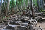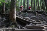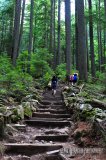 Grouse Grind on niin suosittu polku, että kesäviikonloppuisin sillä on syytä varautua jopa suoranaiseen ruuhkaan. Koska polku on koko matkaltaan huonokulkuista kivikkoa ja kapeita portaita, sitä kannattaa välttää kauniina viikonloppuina. Tämän kehoituksen vuoksi mekään emme ole käyneet siellä ennen viime viikkoa, jolloin minä suunnistin keskiviikkoaamuna yksin kokeilemaan tämän legendaarisen ja paljonpuhutun polun.