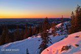 Vaikka vaaran huipulla ei ollutkaan lunta, oli siellä silti jäistä ja varovaisesti kävimme katsomassa myös hieman matalamman Akka-Kolin huipulta toiseen ilmansuuntaan aukeavat maisemat. Vaikka kello oli vasta vähän yli kaksi iltapäivällä, oli keskitalven aurinko jo melkein laskeutunut horisontin taakse.