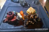 Pimeä laskeutuikin pian, mitä pakenimme Kolin huipulla sijaitsevan Sokos Hotellin sisälle lämpimään. Hotelli on remontoitu vain muutama vuosi sitten ja nautimmekin hotellin ravintolassa maukkaan päivällisen. Suomalaisista makupaloista muodostuva ruoka oli erittäin hyvää ja jätti hyvän fiiliksen, vaikka itse palvelu olikin pohjoisamerikkalaiseen palveluun tottuneelle hieman hidasta.
