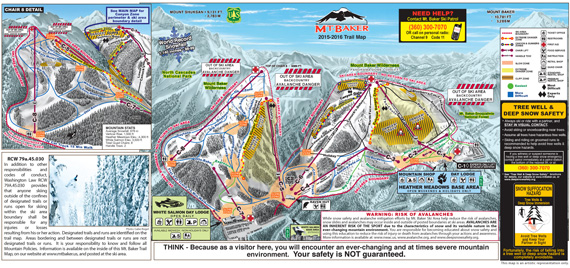 Korkeasta ja tunnetusta vuorestaan huolimatta itse Mount Bakerin laskettelukeskus on pieni, sillä se sijaitsee hieman syrjässä. Suurimmat lähistöllä sijaitsevat kaupungit ovat 80 000 asukkaan Bellingham sekä rajan pohjoispuolella 133 000 asukkaan Abbotsford, joiden ympärillä on myös muita laskettelukeskuksia, kuten kaunis Hemlock Valley. Baker on kuitenkin kuuluisa juuri pehmeästä luonnonlumestaan, jota on tarjolla niin paljon ettei keskukselle ole tarvinnut rakentaa minkäänlaista lumetusjärjestelmää. Kahdelle vuorenhuipulle levittäytyvän keskuksen alin hissi lähtee 1066 metrin korkeudelta ja keskuksen korkein huippu sijaitsee 1551 metrissä. Se on sangen vähän verrattuna itse Mount Bakerin 3285 metrin korkeuteen, mutta eipä keskus edes sijaitse itse Bakerin rinteillä, vaan Mount Bakerin ja 2783-metrisen Mount Shuksanin välisellä harjanteella.