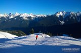 Alkujärkytyksen jälkeen pelkoon varmaankin turtui, sillä aivan fantastinen laskettelukeli käänsi suupielet hymyyn. Rinteiden lumi oli kuivaa pakkaslunta ja aivan erilaista kuin paikallisvuorilla sekä usein myös Whistlerissä, missä lumi on pääsääntöisesti kosteampaa. Bakerin rinteet eivät ole järin pitkiä, mutta ruuhkattomien hissien vuoksi ylös pääsee nopeasti ja päivän aikana ehtii laskemaan hyvän määrän mäki. Maisemat rinteistä ympäröiville vuorille ovat aivan uskomattomat, varsinkin lauantain kaltaisena kauniina poutapäivänä. Harmillisesti kuitenkin rinteet sijaitsevat vuoren pohjoisseinustalla ja ovat siten suuren osan päivästä korkean vuorenharjanteen varjossa.